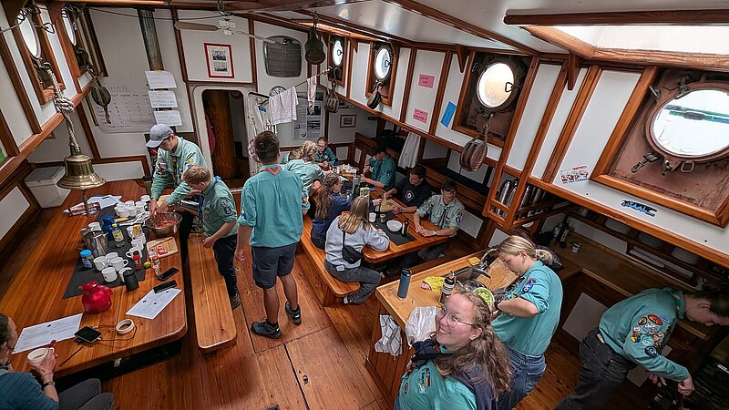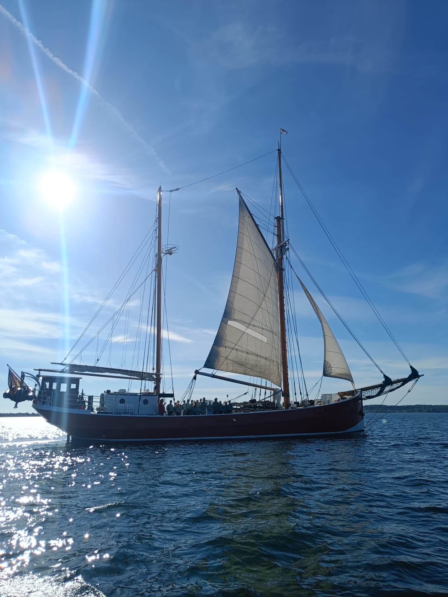 KlimaSail 2025 – Klar zur Wende 20 Pfadfinderinnen und Pfadfinder aus ganz unterschiedlichen Stämmen des REGP machten sich auf, um ein gemeinsames Abenteuer zu erleben. 7 Tage segeln, 7 Tage neue Menschen kennenlernen, 7 Tage KlimaSail. 7 Tage auf engstem Raum – und das auf einem über 100 Jahre alten Segelschiff, mitten auf der Ostsee. Gestartet sind wir in Flensburg, direkt aus dem Museumshafen, an Bord des Traditionsseglers Ryvar. Von dort ging es Richtung Dänemark. Neben all den Segelmanövern und dem Leben an Bord lernten wir viel über das Klima, über Umweltschutz und über die Rolle, die wir selbst als Einzelne – und gemeinsam als Pfadfinder – in unserer Gesellschaft einnehmen können. Unter dem Motto „Klar zur Wende“ standen unsere Tage an Bord. Wir lernten, wie man Segel setzt, warum Ordnung und tägliche Nachbereitung so wichtig sind und wurden von Tag zu Tag ein wertvollerer Teil der Crew. Die erfahrene und herzliche Schiffsbesatzung nahm uns dabei großartig mit. Auch inhaltlich war einiges geboten: Wir erfuhren mehr über den Treibhausgaseffekt, tauschten Meinungen aus und diskutierten darüber, wie wir unseren Beitrag zum Klimaschutz leisten können. Wir lernten spielerisch die Folgen von Plastik im Meer kennen und erarbeiteten aus dem Methodenbuch eigene Gruppenstundenangebote für verschiedene Altersklassen. Wie sehr das Klima unser Leben bestimmt, wurde uns auch durch verschiedene Methoden und Spiele bewusst. Manchmal machte uns der Wind allerdings einen Strich durch die Rechnung – die Segel mussten neu gesetzt werden, und das KlimaSail-Programm wartete geduldig. So spürten wir ganz konkret: Das Klima beeinflusst unseren Alltag – heute schon und in Zukunft noch viel stärker. Natürlich blieb auch Zeit, das Leben auf See zu genießen. Bei bestem Wetter lagen wir im Klüvernetz, kochten gemeinsam und musizierten auf Deck. Schon nach kurzer Zeit fühlte es sich an, als würden wir uns alle schon ewig kennen – aus Fremden wurden schnell Freunde. Wir wussten jeder packt mit an und wir können uns gegenseitig aufeinander verlassen, sei es bei dem Abwasch oder dem Segel zusammenpacken. Eine Übernachtung vor dem Örtchen Middelfart, mit Blick auf die beeindruckende Lillebælt Brücke rundete den Segeltag wunderbar ab. Unser Glaube kam natürlich nicht zu kurz. Jeden Morgen starteten wir mit einer Andacht. Besonders die Bibelstelle aus Matthäus 14,22–33 begleitete uns: die Geschichte, in der Petrus auf dem Wasser geht und ins Schwanken gerät, sobald er den Blick von Jesus abwendet. Unser Leitsatz wurde schnell: „Focus on me, not the storm.“ Gerade auf hoher See bekam diese Bibelstelle für uns eine besondere Bedeutung. Er schenkte uns Mut und Hoffnung, auch wenn Zweifel aufkamen oder Aufgaben zunächst unmöglich erschienen. Die Sorgen und Unsicherheiten wurden leiser, und unser Vertrauen wuchs – nicht nur in Gott, sondern auch in uns selbst und in die Gemeinschaft, die uns getragen hat. So konnten wir dieses Abenteuer mit immer mehr Zuversicht bestreiten. Ein besonderes Erlebnis war auch unser Halt an der dänischen Insel Årø wo wir beim Baden und mit Wassermikroskopen die Unterwasserwelt entdecken konnten. Auch unser Stopp in Sønderborg, wo wir direkt in ein Kultur- und Stadtfest hineingerieten, war ein tolles Erlebnis. Wir durften die dänische Kultur hautnah miterleben! Und typisch Pfadfinder durfte auch der Bunte Abend am letzten vollen Tag nicht fehlen: Es wurde gespielt, gesungen und Tränen gelacht. – der perfekte Abschluss für unsere gemeinsame Woche. Nach dem letzten gemeinsamen Frühstück an Bord liefen wir wieder in Flensburg ein. Gemeinsam putzten wir das Schiff, bevor es ans Abschiednehmen ging. Mit einem lachenden und einem weinenden Auge verließen wir die Ryvar: weinend, weil die wunderbare Zeit viel zu schnell vorbeiging – und lachend, weil wir voller Dankbarkeit zurückblicken und uns sicher sind: Wir sehen uns ganz bestimmt bei den nächsten Veranstaltungen des REGP wieder.