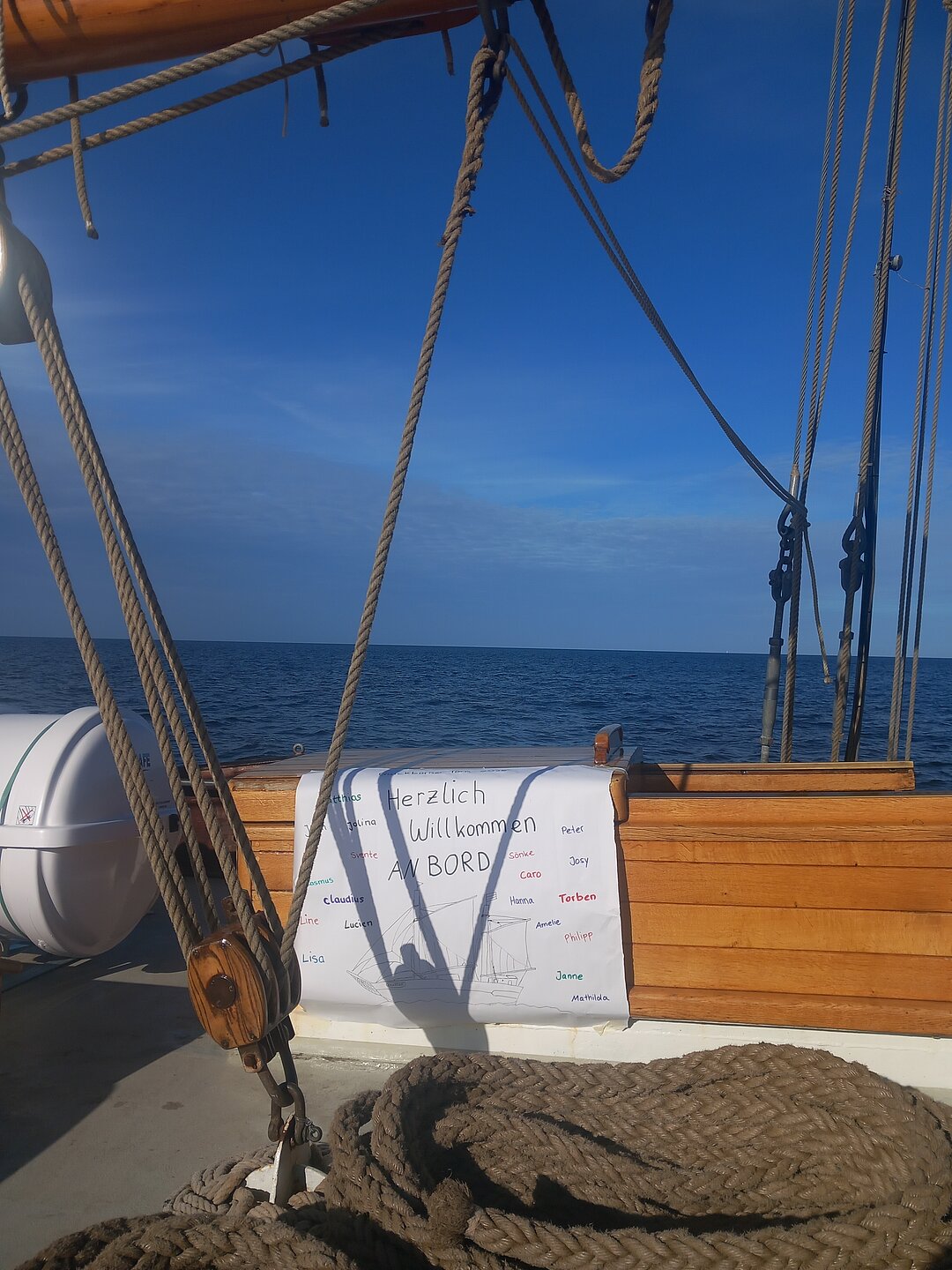 Der letzte Tag wurde zum Höhepunkt des gesamten Törns. Nachdem die Crew uns aus dem Hafen gefahren hatte, übernahmen wir die Amazone vollständig. Wir setzten die Segel, bestimmten den Kurs, steuerten und navigierten eigenständig bis zur Kieler Förde. Es war ein besonderer Moment der gemeinsamen Verantwortung, der Konzentration und des Stolzes. In Kiel übergaben wir das Schiff erleichtert und glücklich zurück, reflektierten die Woche und beendeten den Törn mit der Methode der „Warmen Dusche“. Im Kieler Hafen warteten schon Eltern, Geschwister und Familien, die noch einmal einen Blick auf unser Zuhause der vergangenen Woche werfen konnten.