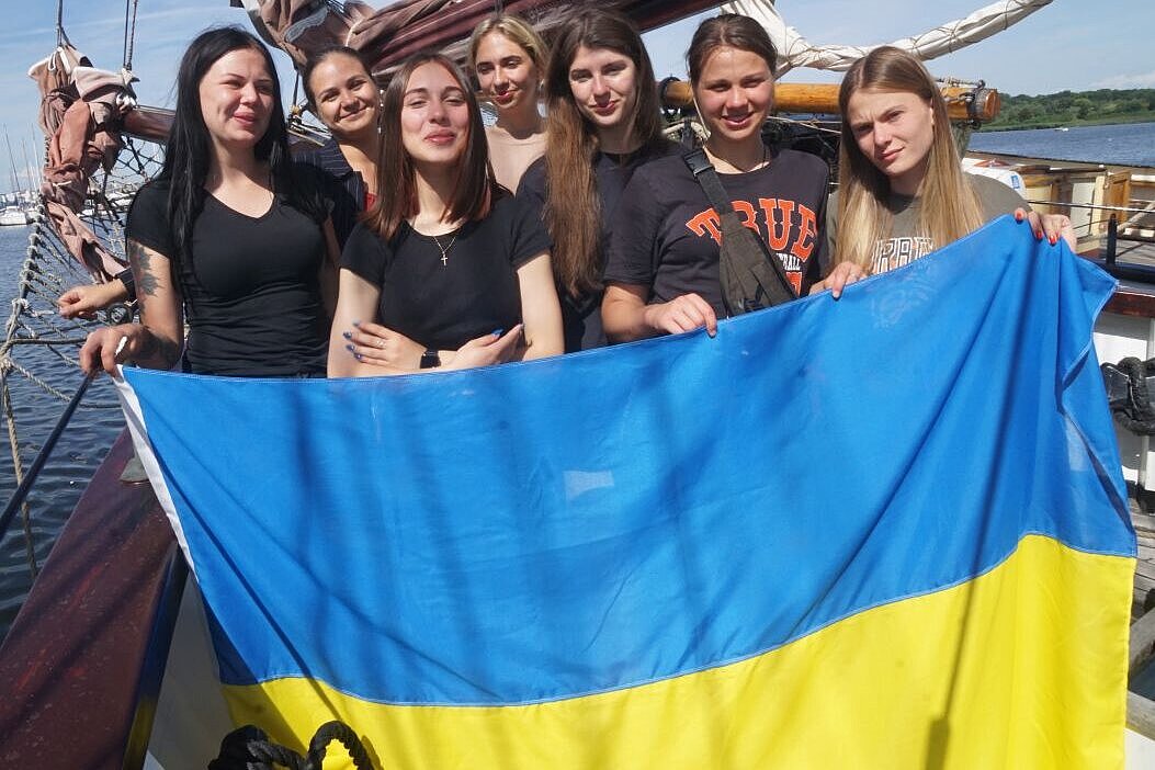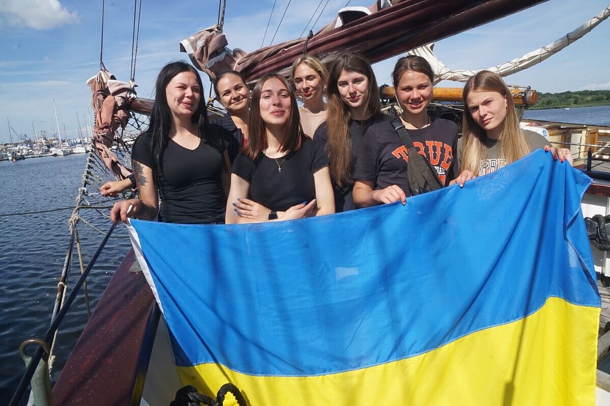Zlata, Anna, Mariana, Valeriia, Anna, Mariia und Viktoriia aus der Ukraine sind bei unserem internationalen Klimasail-Projekt dabei.