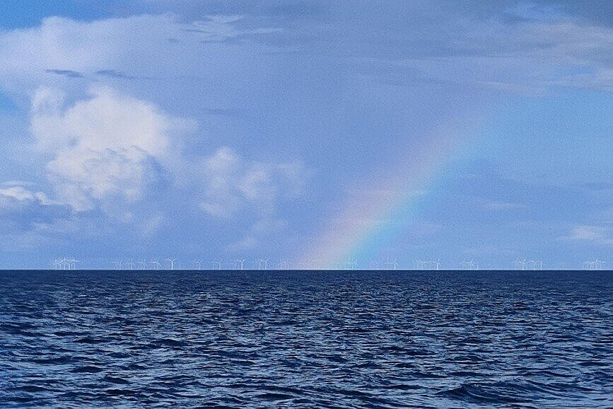 Es war eine turbulente Woche, mit Abwettern im Hafen, viel Wind, Regen und Wellengang. Wir spürten die Kraft der Natur, umgeben von einem einzigartigen und schützenswerten Ökosystem, und lernten dadurch auch, uns auf unser hochseetaugliches Segelschiff und uns als Gruppe zu verlassen. Während einige durch Seekrankheit ausgeknockt waren, wuppten andere die Küche oder halfen bei den Manövern und sich gegenseitig bei Laune zu halten. In dieser Zeit haben wir das Leben auf und mit dem Meer mit all seinen Herausforderungen kennengelernt und wurden als „Entschädigung“ mit wunderschönen Regenbögen über offshore-Windparks und mit Sonne, die sich ihren Weg durch die Wolken brach, belohnt.